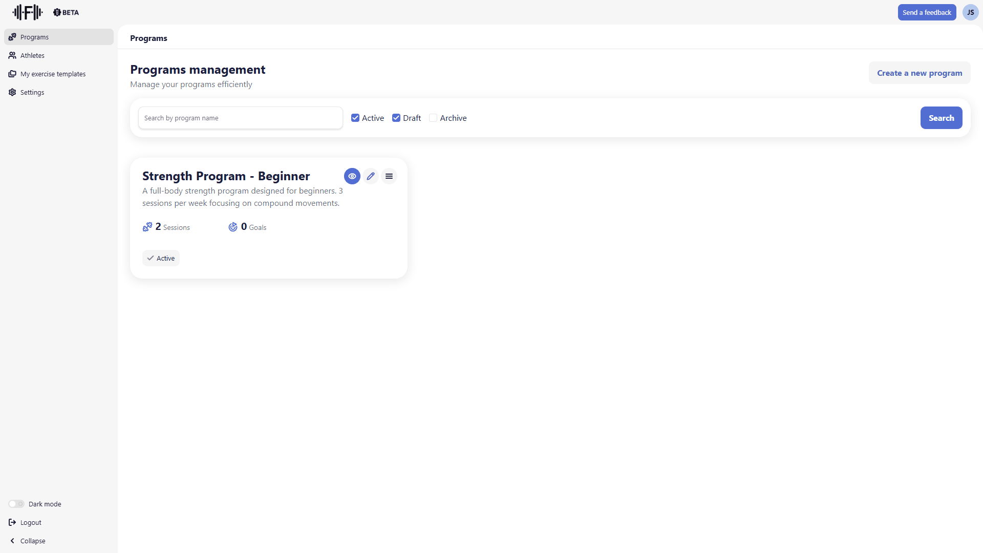 You can assign any of your programs to test the athlete experience. It's useful for checking that a program is properly configured before sharing it with your actual athletes, or for tracking your own training from the same account.